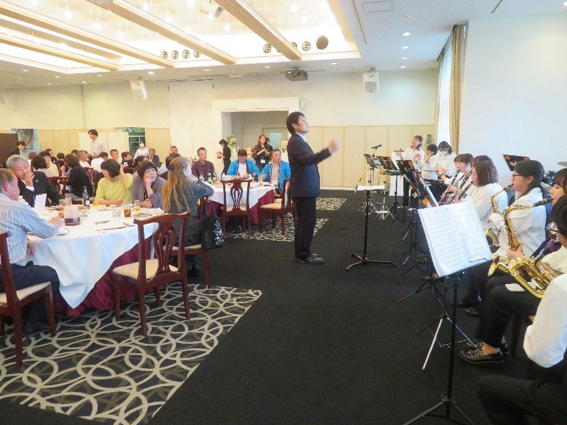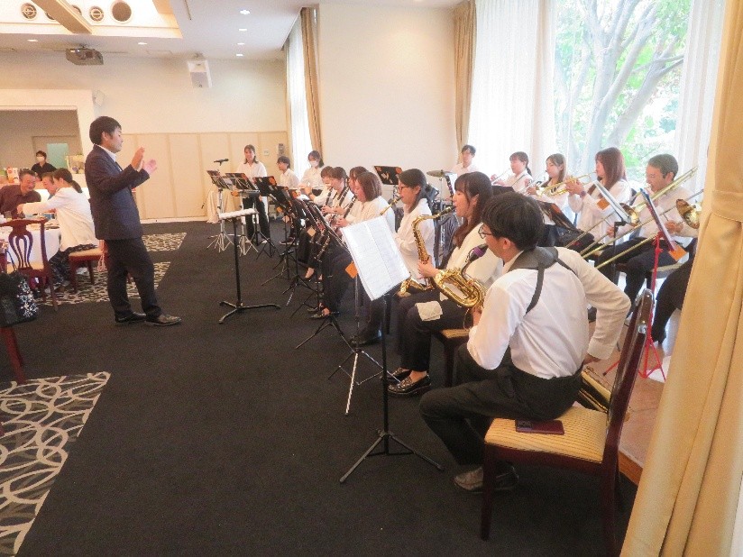 また、懇親会では、筑豊高校吹奏楽部出身メンバーを中心に「社会人になっても!家庭を持っても!吹奏楽をしたい!」という想いを持ったメンバーが集まった「オレンジバンド」によるMISAさんの「アイノカタチ」や「校歌」など5曲が披露されました。