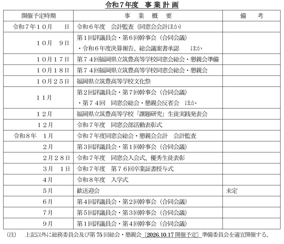 令和7年度は、会の運営をより円滑にするため会則の一部改正を行うとともに、会の目的である「会員相互間の親睦と福祉を図り併せて母校の発展に寄与する。」の具現化に向けて取り組んで行く。